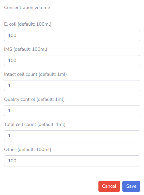 Measured concentrations in a gate are currently reported in two columns: the event column and a corresponding volume column. IMS (Legionella) concentrations are given as concentrations per 100 ml volume and comply with ISO standards.